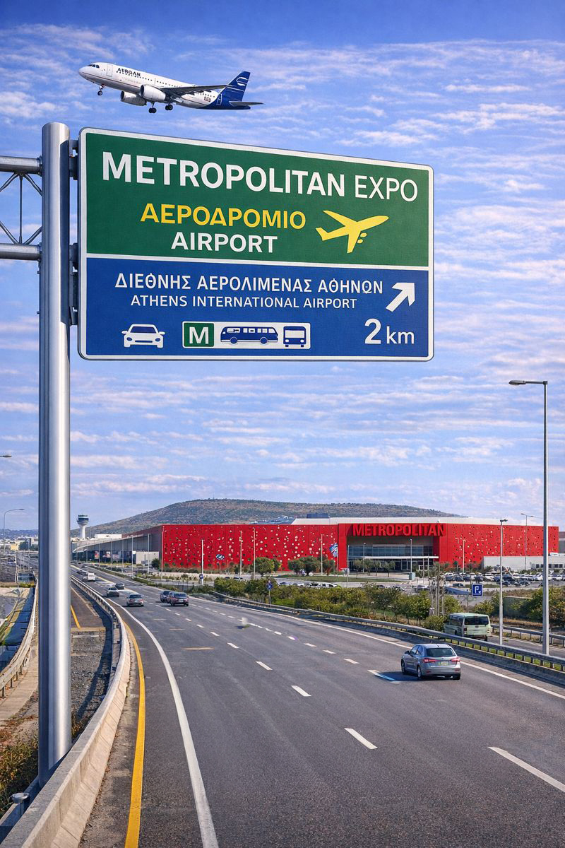 Η πρόσβαση στο “Metropolitan Expo” είναι εύκολη τόσο με το αυτοκίνητό σας ή το αεροπλάνο, όσο και με τα Μέσα Μαζικής Μεταφοράς (Μ.Μ.Μ.) της Αττικής.